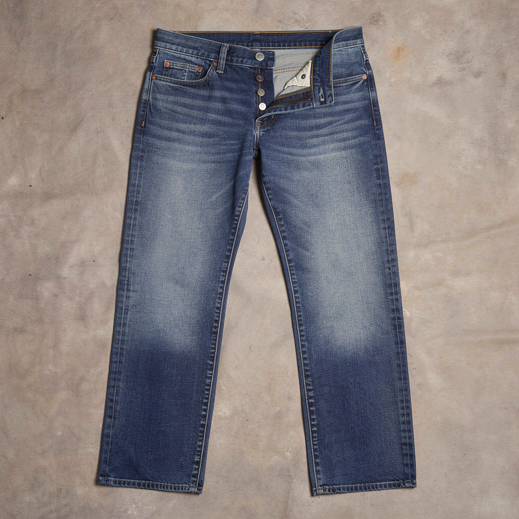 Embrace rugged simplicity with the Heritage Blue Straight Leg Jeans. This essential piece is built for durability and comfort, reflecting traditional denim craftsmanship. The mid-weight, non-stretch denim provides a structured shape and a classic “true blue” denim color that maintains its rich hue. Perfect for a workwear-inspired look or simply for reliable daily wear. Designed with a traditional five-pocket layout and sturdy copper rivets.